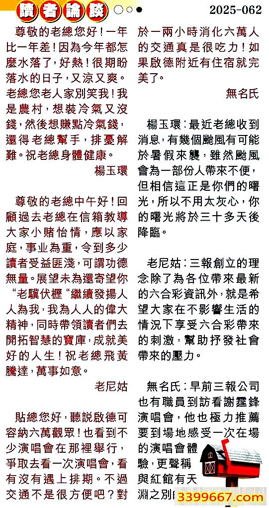 主题 :062期:彩民推荐〖貼信讀者論壇〗 |