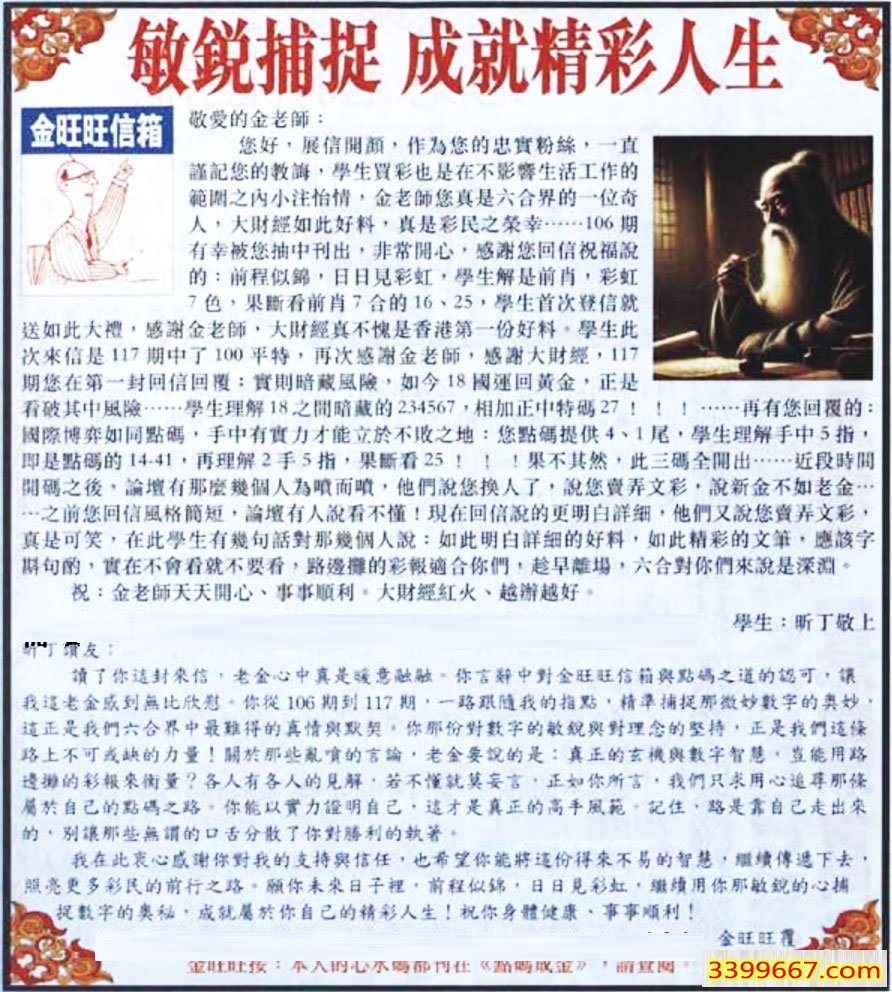 主题 :063期:金旺旺信箱彩民推荐→→《敏锐捕捉 成就精彩人生》 |