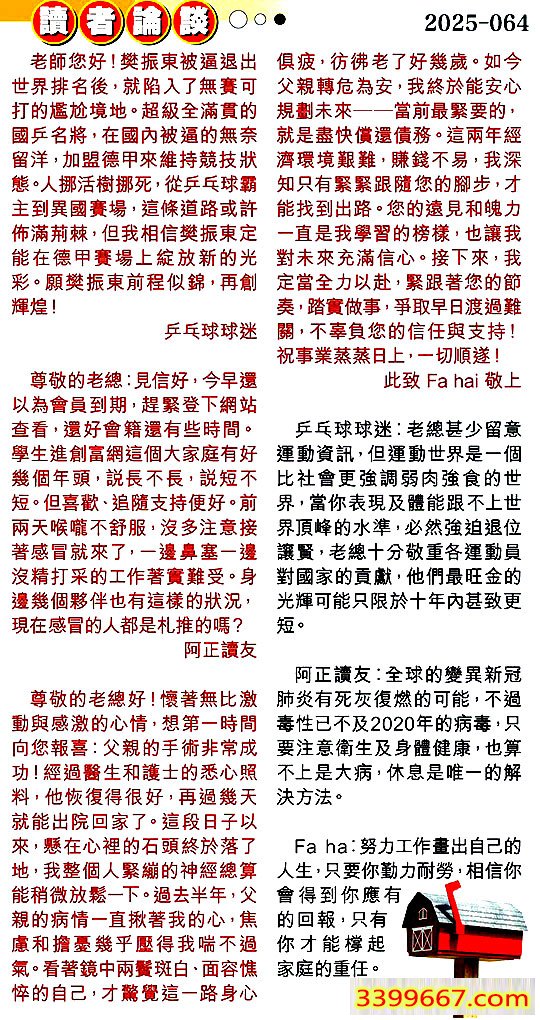 主题 :064期:彩民推荐〖貼信讀者論壇〗 |