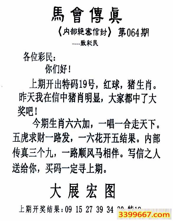 064期:首发推荐:≮馬會傳眞≯→(香港正版)