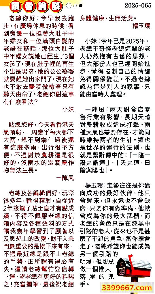 主题 :065期:彩民推荐〖貼信讀者論壇〗 |