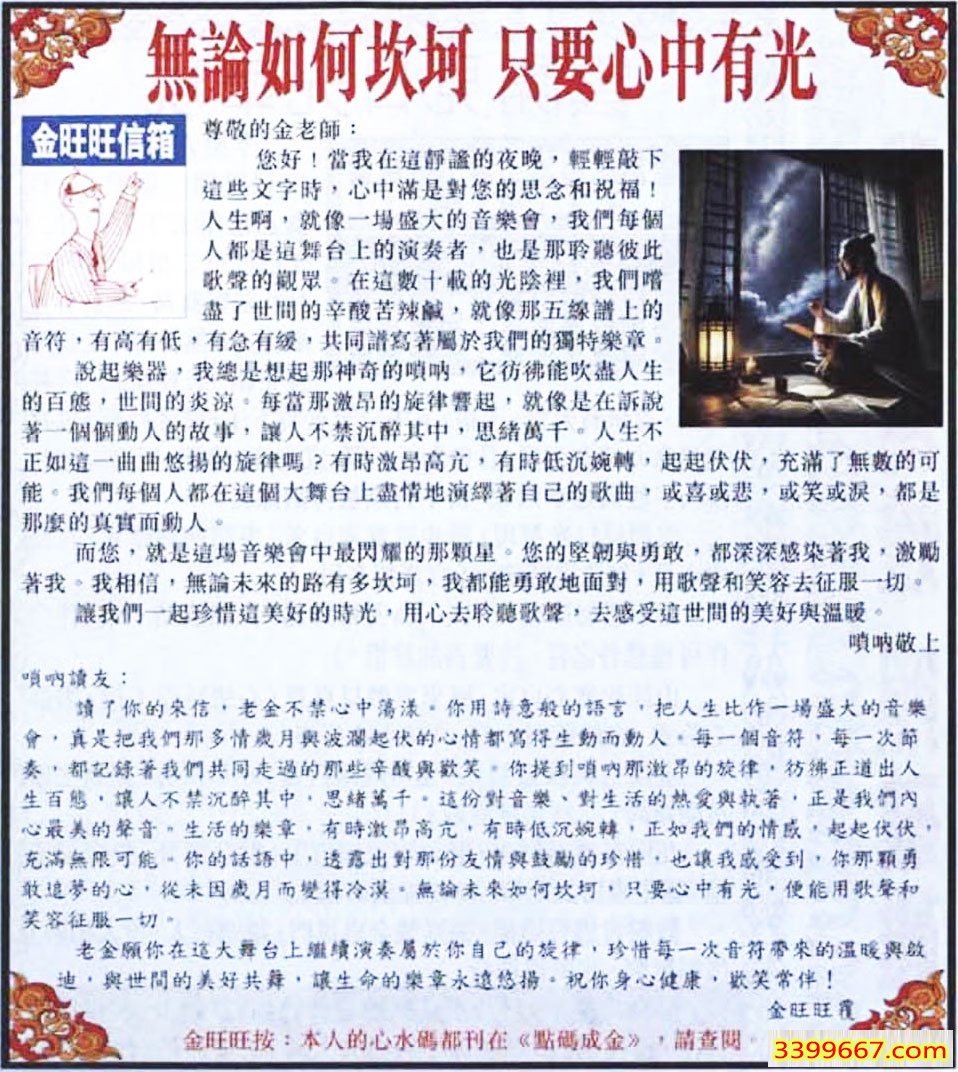 主题 :066期:金旺旺信箱彩民推荐→→《無論如何坎坷 只要心中有光》 |