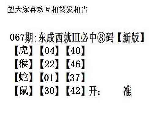 主题 :067期:另版【东成西就四肖8码】 |