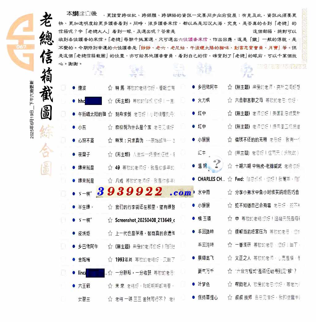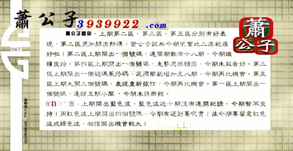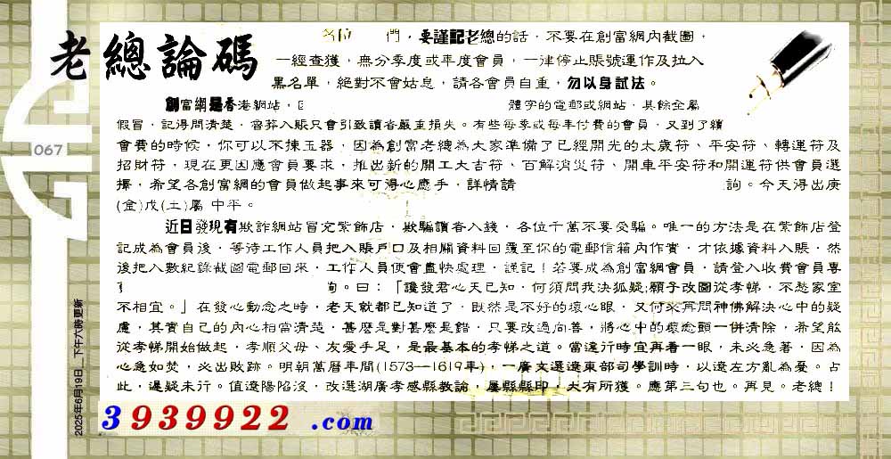 主题 :067期:六合皇金句/老总论码/萧公子/林大师/五行夺码/老总信箱截 |
