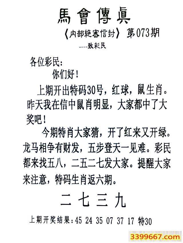 主题 :073期:首发推荐:≮馬會傳眞≯→(香港正版) |