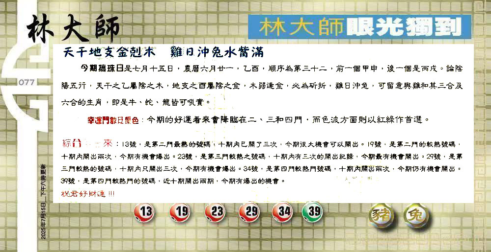 主题 :077期:六合皇金句/老总论码/萧公子/林大师/五行夺码/老总信箱截 |