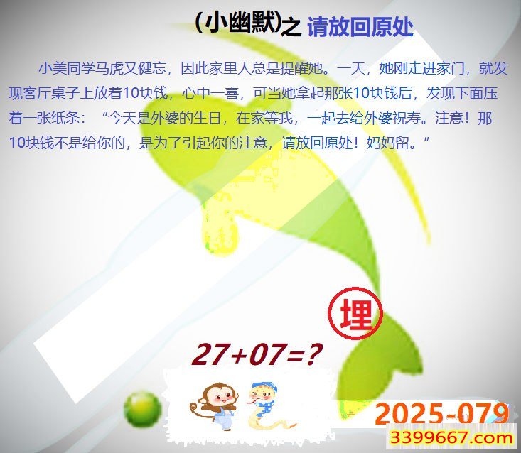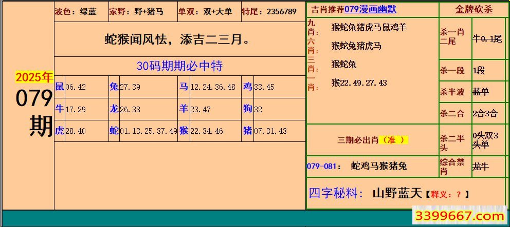 主题 :079期:小鱼儿30码期期中+幽默猜测 |