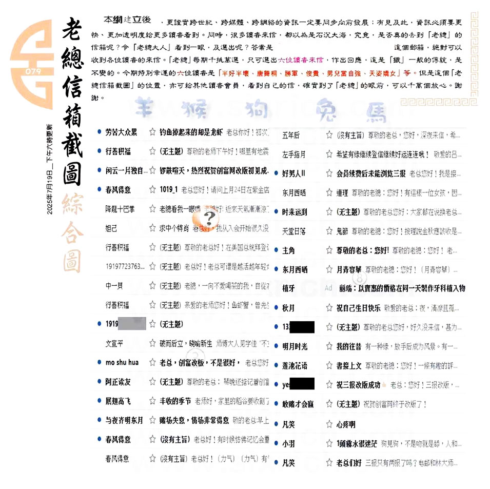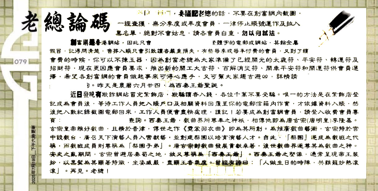 主题 :079期:六合皇金句/老总论码/萧公子/林大师/五行夺码/老总信箱截