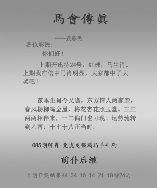 主题 :085期:正马会传真