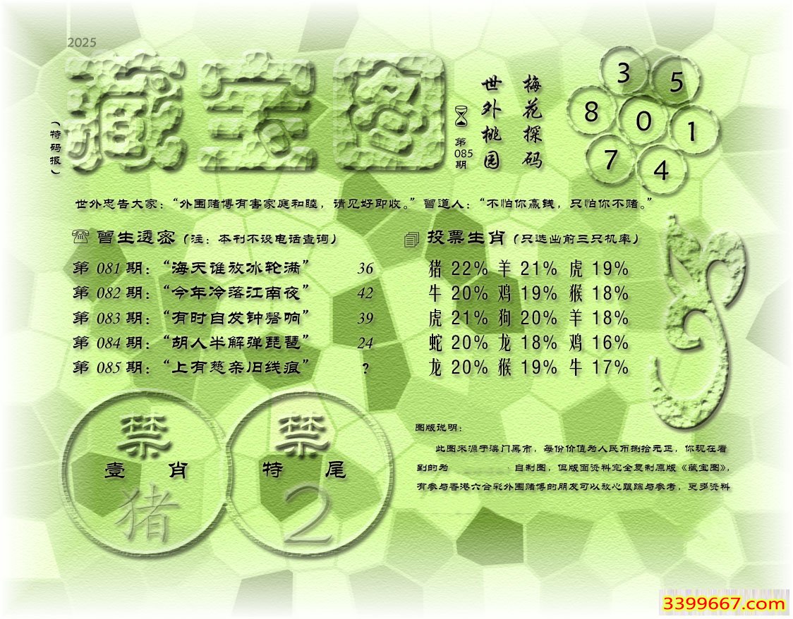 主题 :085期藏寶圖 新:石鼎夜联诗笔健 老:上有慈亲旧线痕 禁:猪 禁:2尾 |