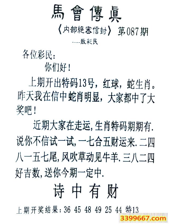 087期:首发推荐:≮馬會傳眞≯→(香港正版)