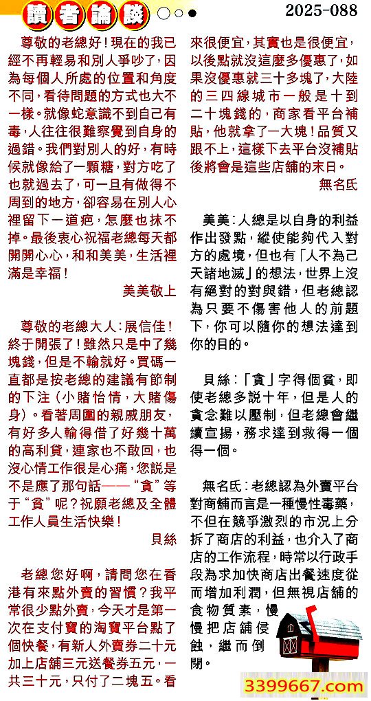 主题 :088期:彩民推荐〖貼信讀者論壇〗 |
