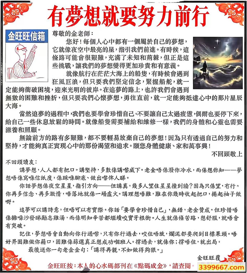 主题 :088期:金旺旺信箱彩民推荐→→《有夢想就要努力前行》 |