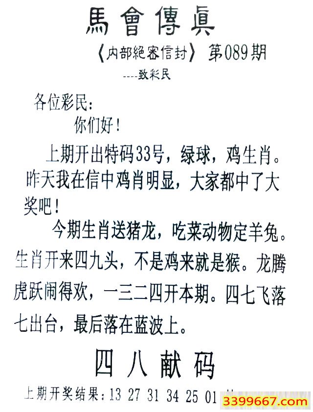 主题 :089期:首发推荐:≮馬會傳眞≯→(香港正版) |
