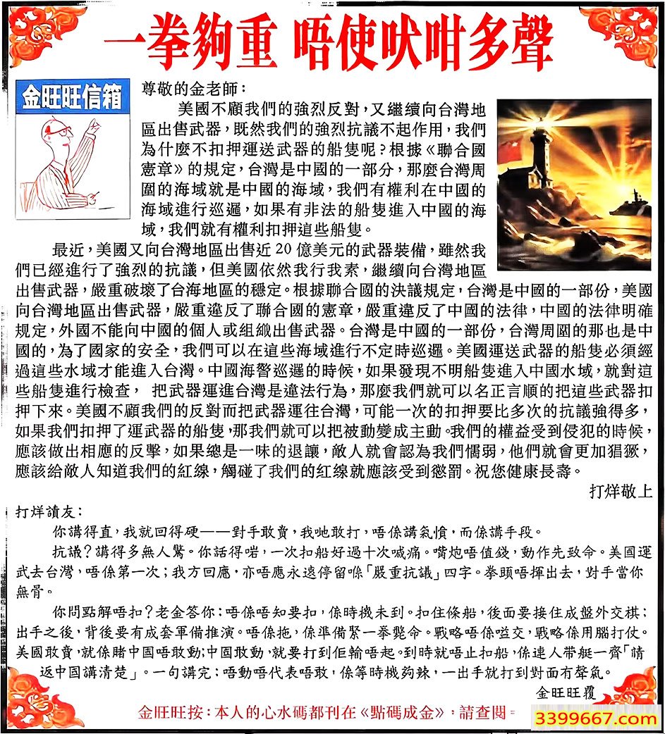 主题 :091期:金旺旺信箱彩民推荐→→《一拳夠重 唔使吠咁多》 |