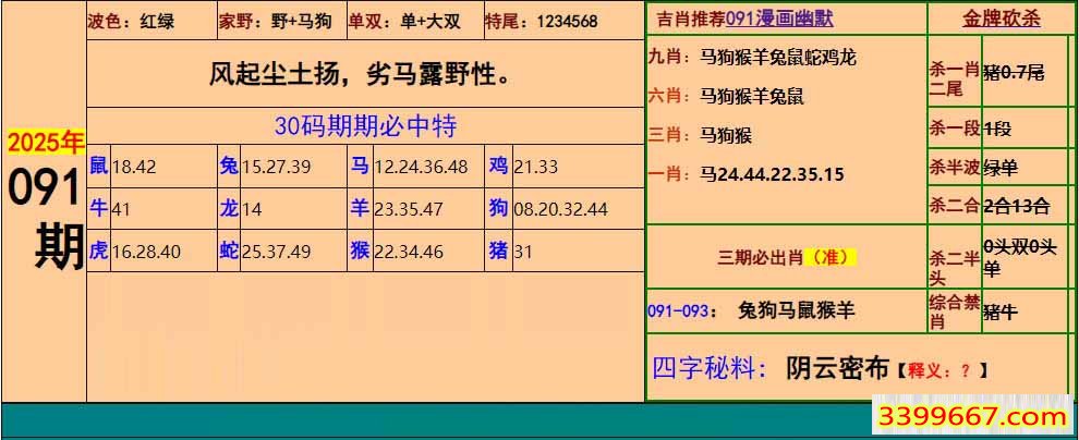 主题 :091期:小鱼儿30码期期中+幽默猜测 |