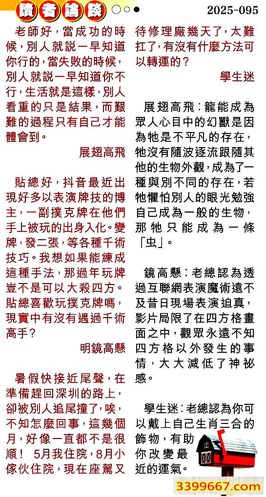 主题 :095期:彩民推荐〖貼信讀者論壇〗 |