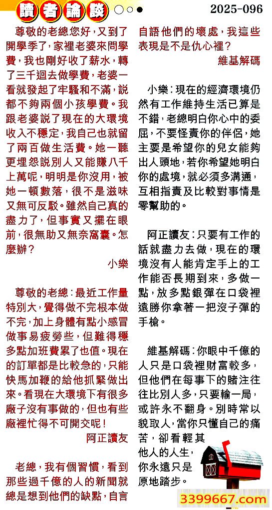 主题 :096期:彩民推荐〖貼信讀者論壇〗 |