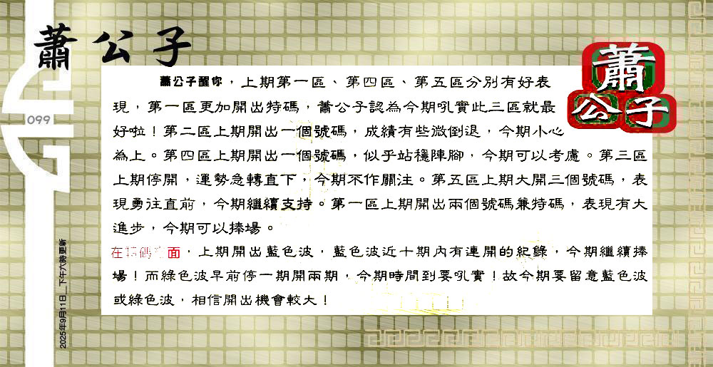 主题 :099期:六合皇金句/老总论码/萧公子/林大师/五行夺码/老总信箱截 |