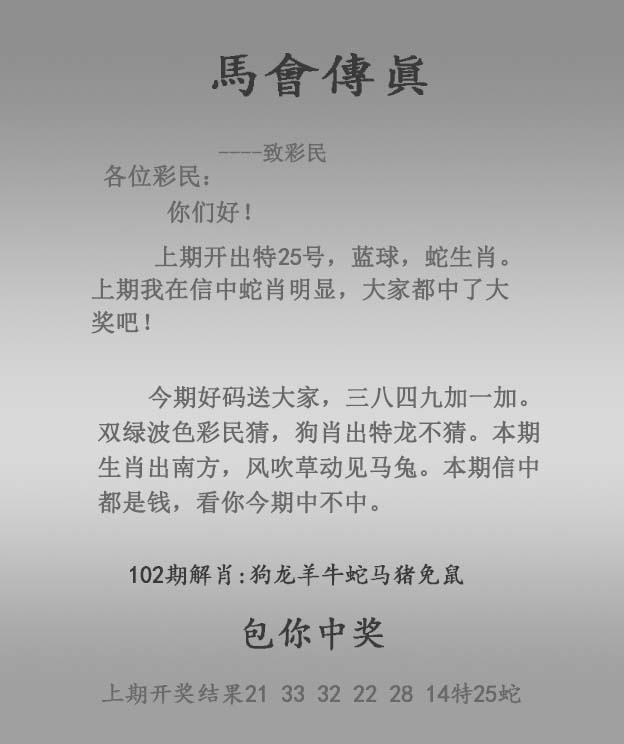 102期:正马会传真