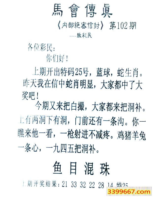 主题 :102期:首发推荐:≮馬會傳眞≯→(香港正版)