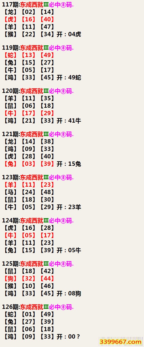 | 主题 :126期:东成西就Ⅲ必中⑧码 |