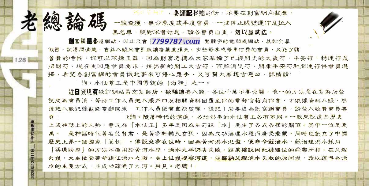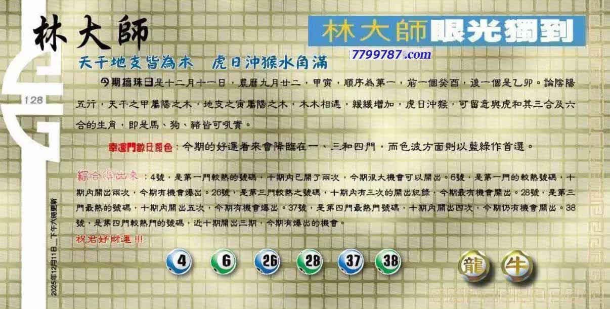 | 主题 :128期:六合皇金句/老总论码/萧公子/林大师/五行夺码/老总信箱截 |