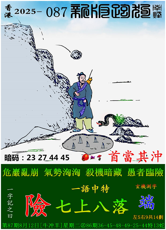 主题 :087期:新版跑狗一字記之曰【險】 玄機測字:【端】